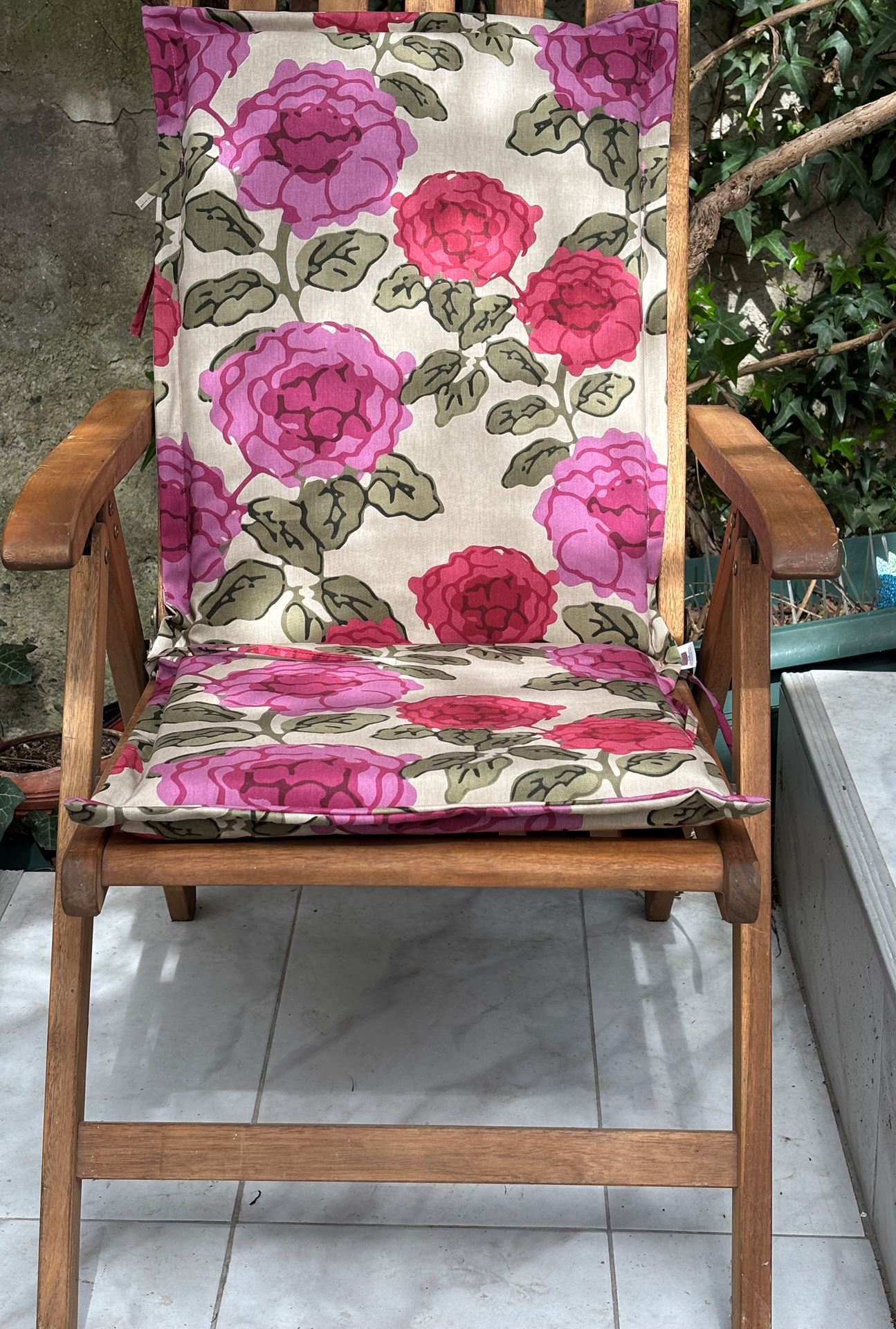 Koton Kumaş Pembe Bordo Dokuma güllü 2 Kademeli Arkalıklı Şezlong Sandalye Minderi