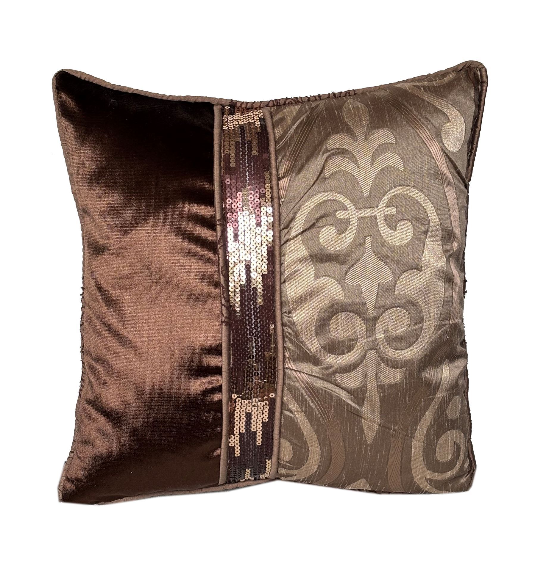 Yastıkminder Tafta Kadife Payet Kahve Dekoratif Yastık Kılıfı